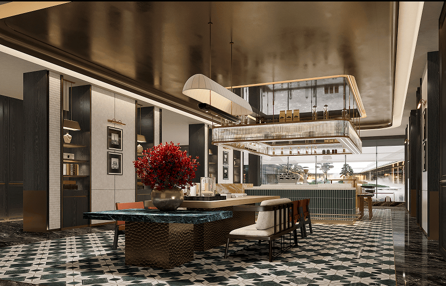 凤凰原的下沉式会所,更让人冷艳:泛会所将多沉功能丰硕而全面地整合起来,行政酒廊、私宴厅、茶馆、书吧等空间,满脚商务宴请、家庭、圈层社交等多元需求。